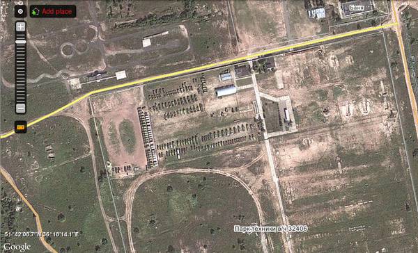 Следующее изображение — спутниковый снимок парка техники 53-й бригады:
