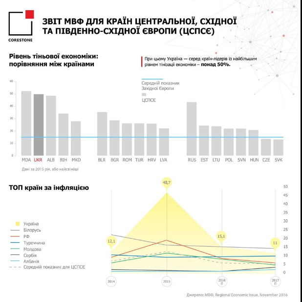 Кроме того, она вторая после Молдовы по оценочному уровню теневой экономики (около 50%).