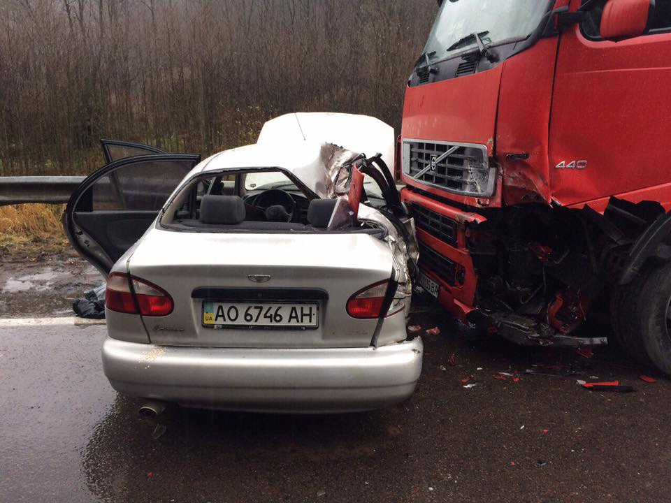 За участі фури Вольво та Део Ланос. Водій Део невпорався з керуванням і його винесло на зустрічну смугу де він зіткнувся із вантажним автомобілем Volvo.