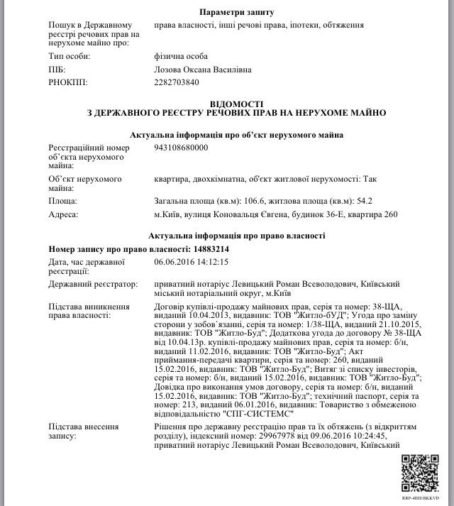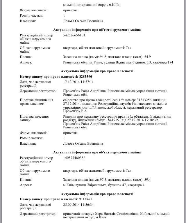 17 грудня 2014 року мамуся Оксана Лозова, яка працює лікарем (педіатр) купляє собі ще одну квартиру в місті Рівне, вул. Відінська, 5В, кв. 184.