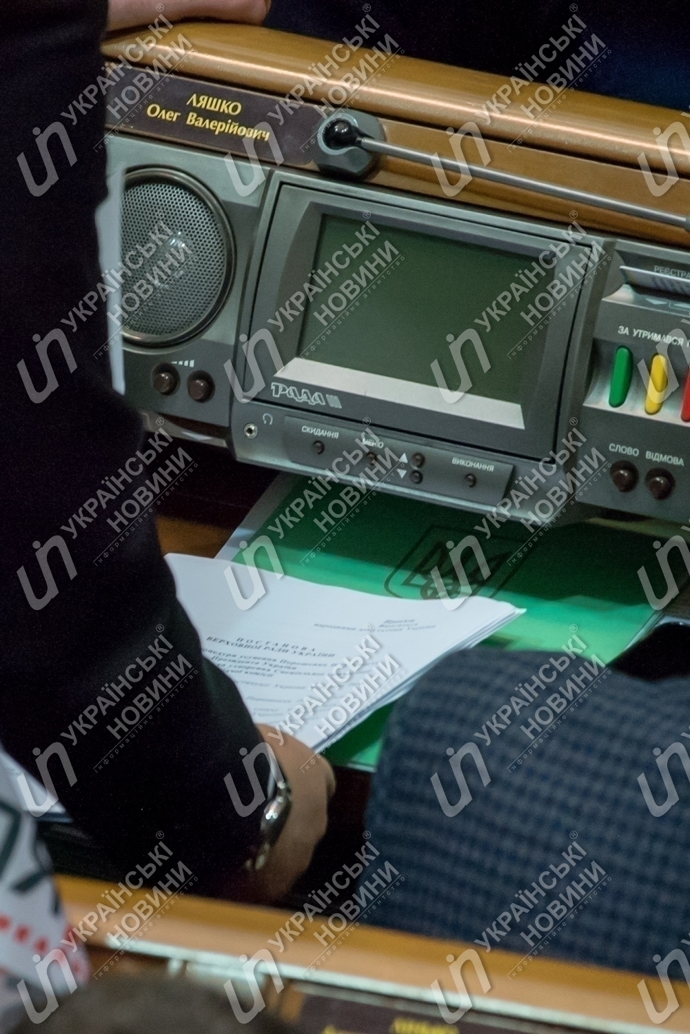 Содержание документа, с которым ходил по сессионному залу депутат, попало в объектив фотокорреспондента Українських Новин Богдана Бортакова.