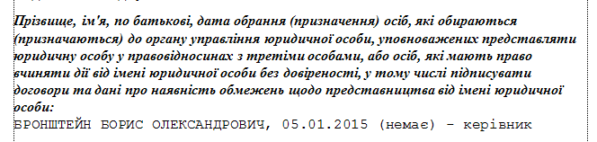 Раньше Борис Бронштейн был соучредителем во всех трех фирмах, но из состава учредителей двух из них ("ЛАЙМ-ФРЕШ БТЛ" и "ЛАЙМ ЭДЖЕНСИ") недавно вышел. С января по конец августа 2015 года