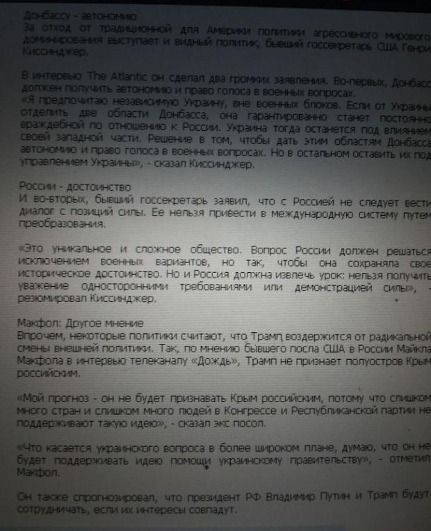 Кто не помнит, кума работает в школе. Понимаю, что агитпром Раиськой Федерации осознал провал на телевизионном фронте, люди после распятых Паниных и расчлененных Ярмольников, мало верят телевизору. Ищут информацию в газетах. Понятное дело «лнровских». Еще привозят газеты из соседнего Гуково РФ или, когда едут, из Украины. Да, дожились, люди, чтобы понять этот бедлам, покупают прессу в России, думая, что она менее политизированная, чем телевидение. Похоже, советское доверие к тому, что написано пером, в народе не вырубить топором.