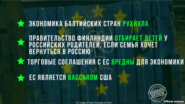 На прошлой неделе некоторые «любимые дезинформационные сюжеты» снова появились в прокремлевских СМИ. «Закат Европы», считают эксперты, стал главной темой: «Так, например, мы узнали, что экономика Балтийских стран уже рухнула. При этом никак не объяснялось, почему тогда граждане балтийских государств сравнительно довольны своим уровнем жизни».