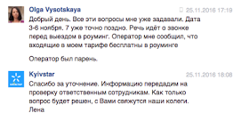 Закончилась моя двухнедельная поездка, прошло еще три дня - а ситуация так и не решилась. Мне позвонили один раз, уточнили дату звонка и предложили наугад выбрать одного из трех сотрудников, которые потенциально могли быть виновными в данной ситуации. Я отказалась и попросила проверить информацию еще раз. Прошло еще три дня, и я, увидев в своей ленте ФБ пост президента КС Петра Чернышова о роуминге, решила оставить там комментарий.