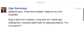 Я очень обрадовалась возвращенным средствам.  Но также я увидела и другое входящее сообщение, немногим раньше: