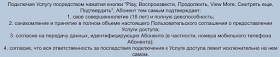 1. Подключая Услугу посредством нажатия кнопки "Play, Воспроизвести, Продолжить, View More, Смотреть еще, Подтвердить" и далее по тексту.