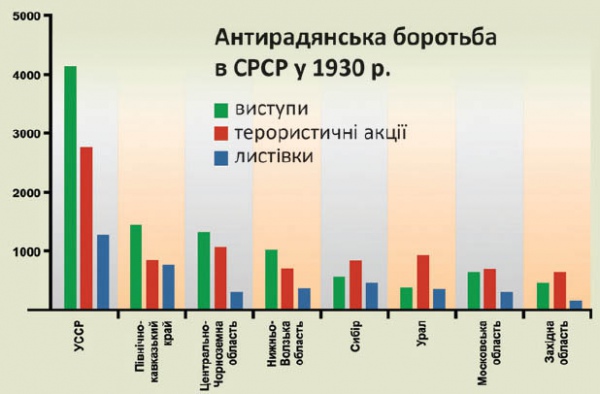 Якщо у 1927-му було здійснено 173 теракти проти представників радянської влади та сільського активу, то за 11 місяців 1928-го — 351, а в 1929-му органами ГПУ було зафіксовано вже 1437 терактів.