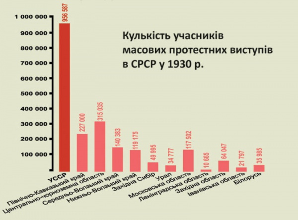 Лише за перші 7 місяців 1932 року органи ГПУ зафіксували в УСРР понад 900 масових виступів, що становить біля 57% (!) усіх антивладних виступів в СРСР за цей час.