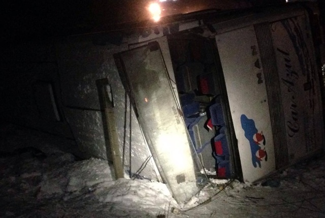 На Днепропетровщине на Криворожской трассе произошло ДТП. На скользкой дороге, пытаясь затормозить, перевернулся автобус с 34 детьми и 6 взрослыми.