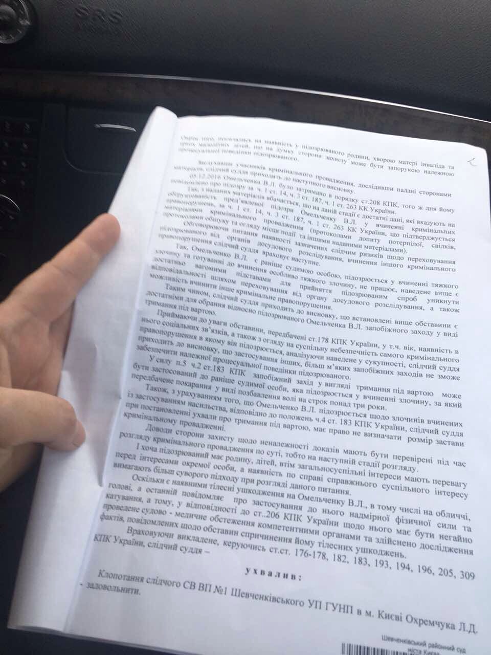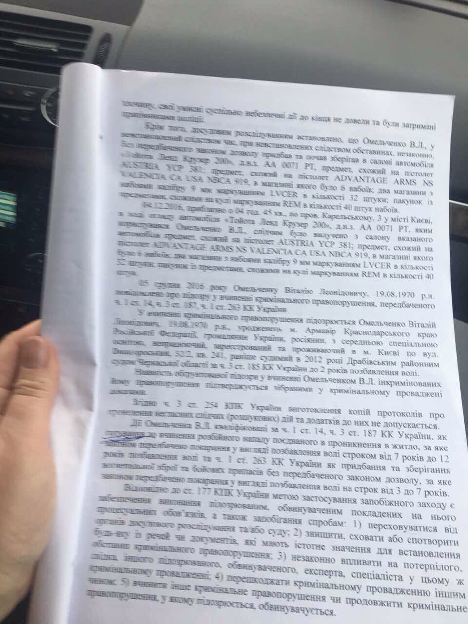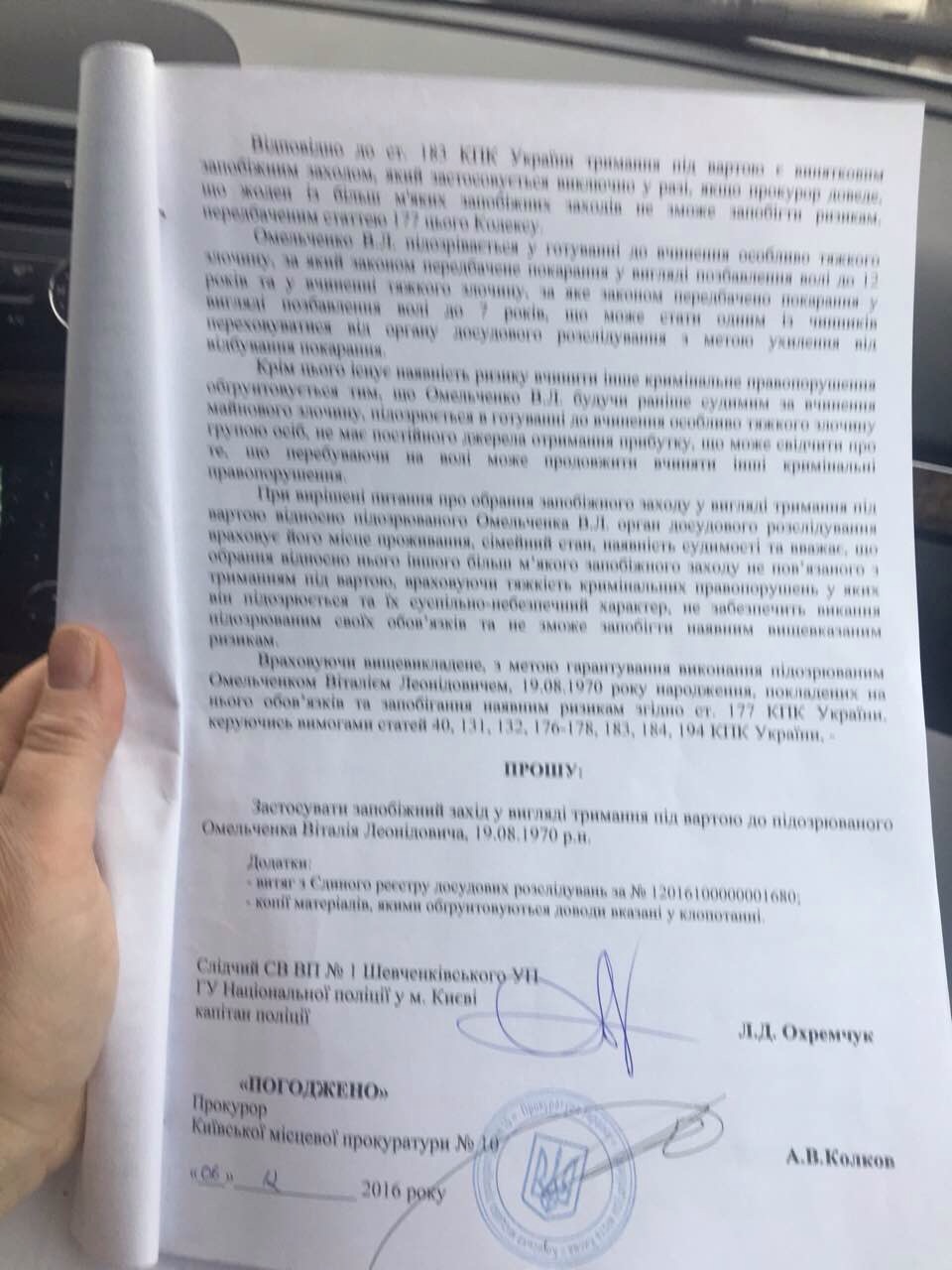 А вот ходатайство о мере пресечения в отношении Омельченко, которое следствие передало в суд.
