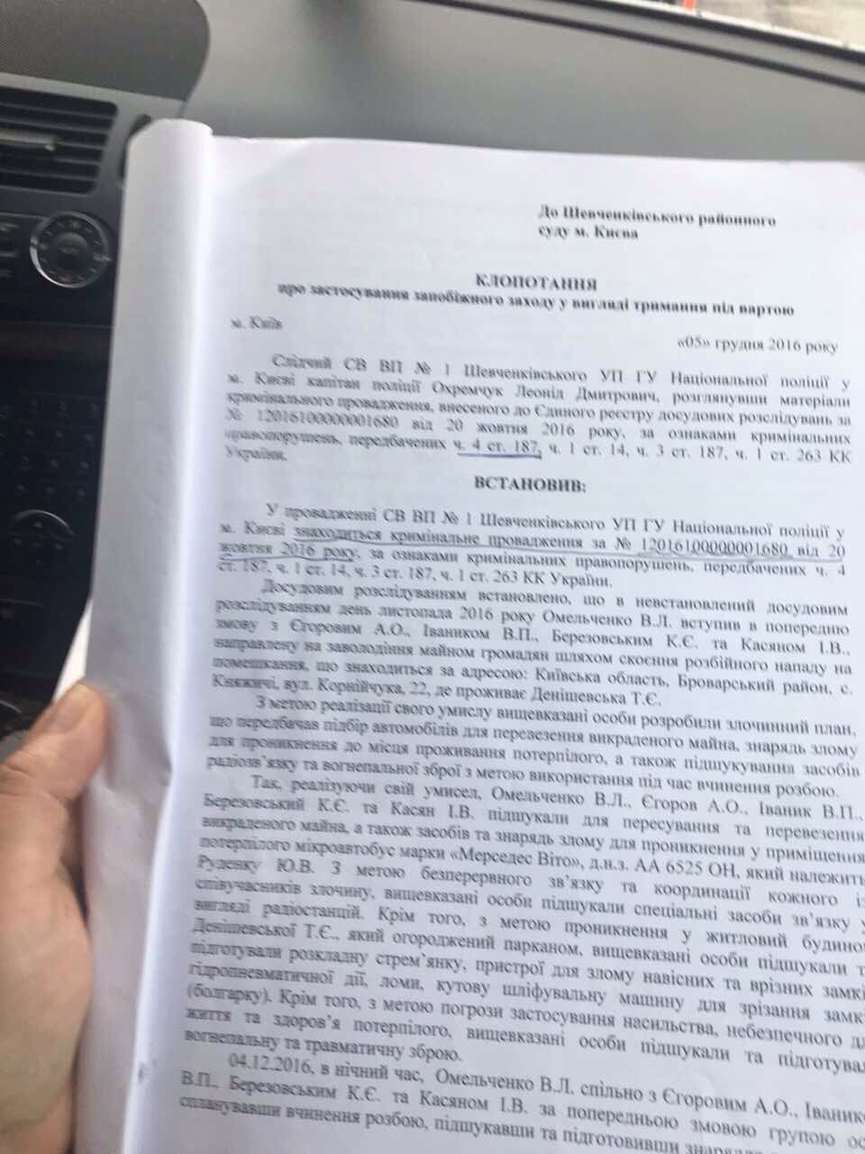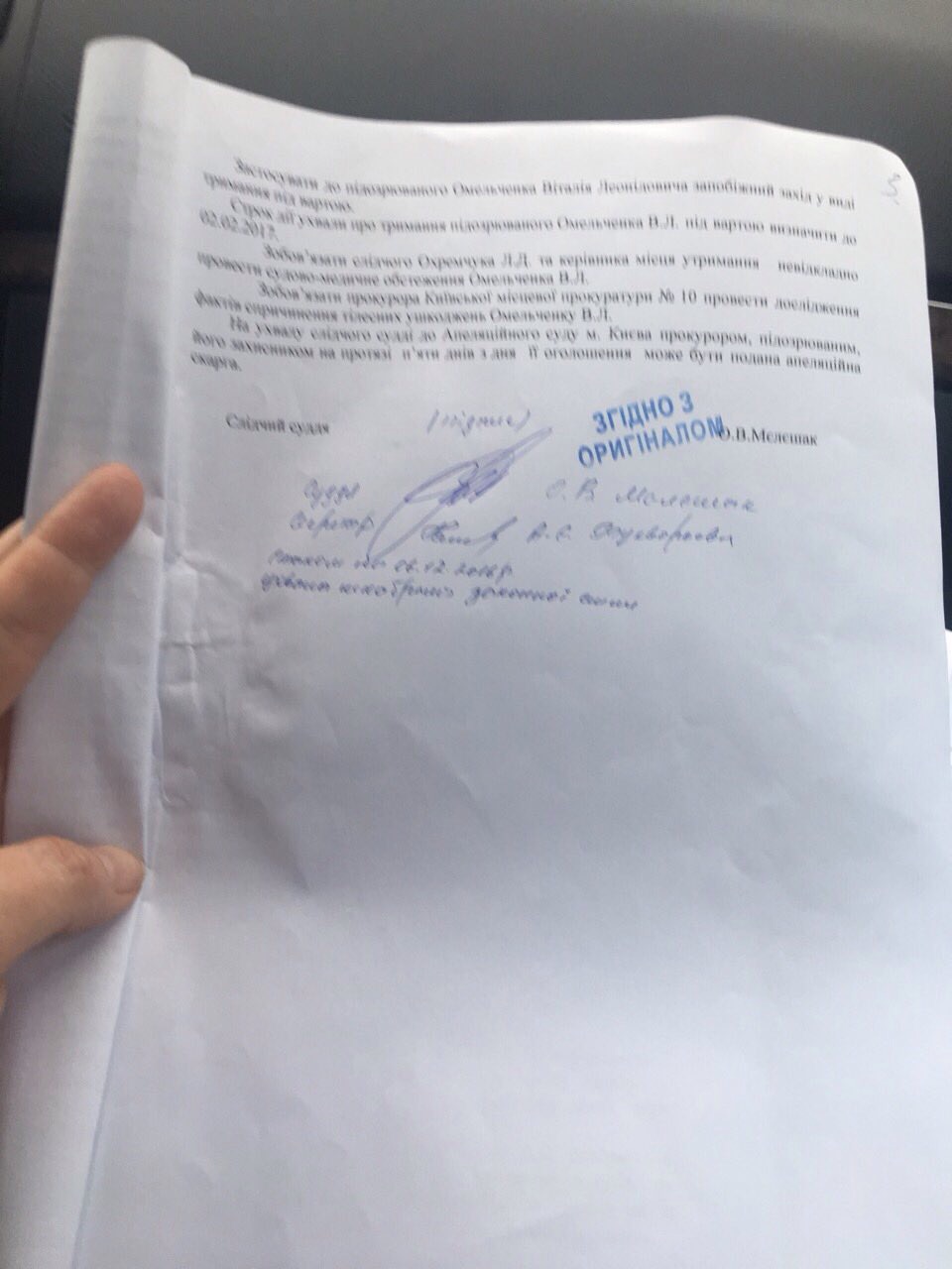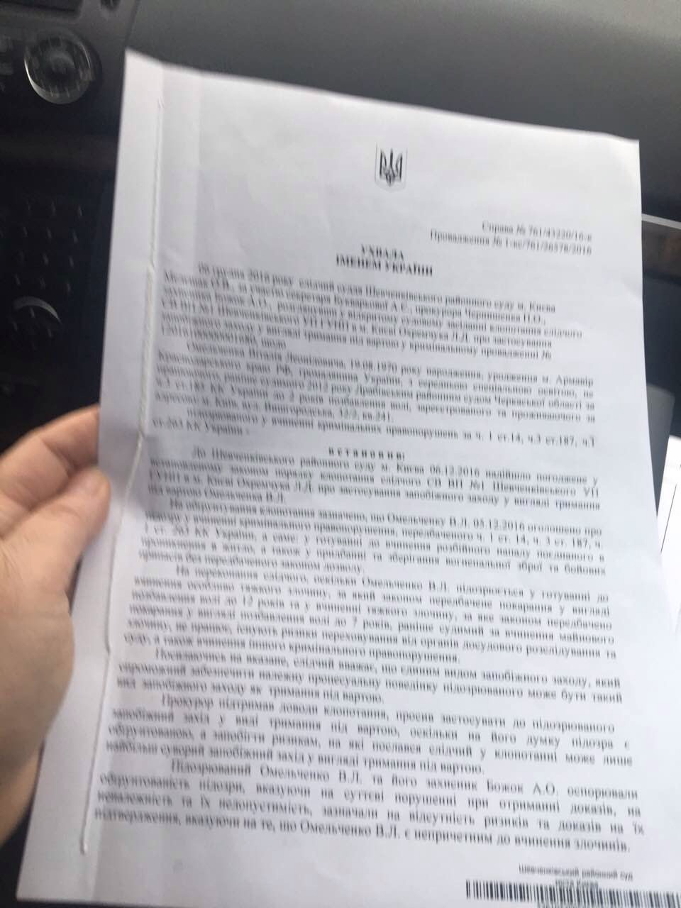 А вот ходатайство о мере пресечения в отношении Омельченко, которое следствие передало в суд.