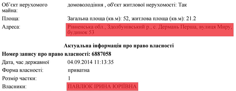 До речі, окрім розкішного будинку, з 2005-го року пані Павлюк також володіє ще й квартирою в Рівному, яку їй також... подарували :)