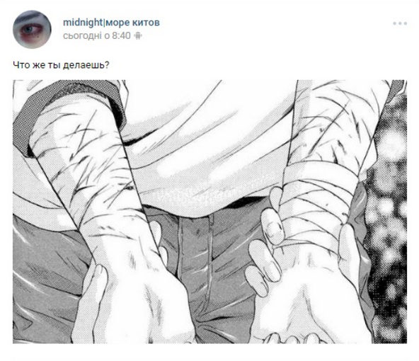В мое время не было никаких «китов» и групп смерти. Все, что подростки делали с собой, было или реальным самовыражением, или навязыванием из субкультур. Это сейчас порезы на руках участники групп в соцсетях, вроде «море китов», называют селфхармом, что дословно означает «вредить себе». А 10 лет назад не было никаких названий — ты просто резал себя, подавляя в такой способ внутренние переживания.