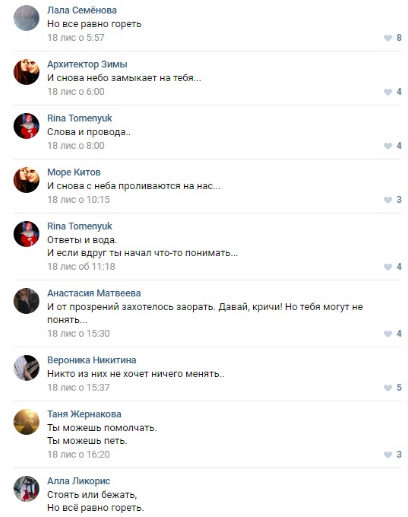 Вилена шагнула с 13-го этажа мариупольской высотки 6 декабря. На свою страницу в соцсети ВКонтакте (с вымышленным именем) девушка заходила последний раз в этот же день. Одна из последних записей была сделана Виленой в 04:41 утра: