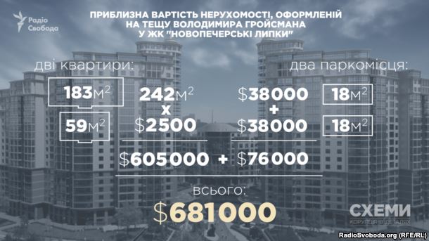 Але «Схем» продовжили з’ясовувати – звідки у тещі-пенсіонерки Гройсмана більш ніж півмільйона доларів на елітну нерухомість у Києві, в якій вже другий рік живе сам прем’єр?