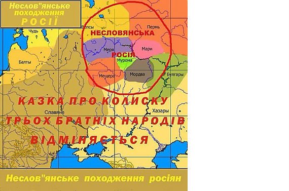 Великороссы. Племя великороссов или русский народ, как он сегодня называется, появилось около XV-XVII вв. среди финских племен: мурома, мере, веси и др.. Тогда появляется его история. Нет истории великороссов на земле Киевской! История великороссов начинается с «Залещанськой земли», с Московии, которые никогда не были Русью. Татаро-монголы, пришедшие на эти земли, внесли значительный вклад в формирование «великороссов». На психологию великорусскую наложили отпечаток заимствования татаро-монгольского инстинкта завоевателя, деспота, у которого основная цель - мировое господство.