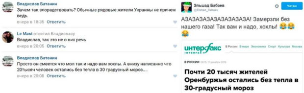 "Замерзли без нашего газа! Так вам и надо, хохлы!" - написал Бабаев.