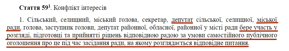 Але депутат вирішив не привертати зайвої уваги до своєї зацікавленості в цьому питанні і не повідомив публічно про конфлікт інтересів, як цього вимагає закон «Про місцеве самоврядування в Україні».