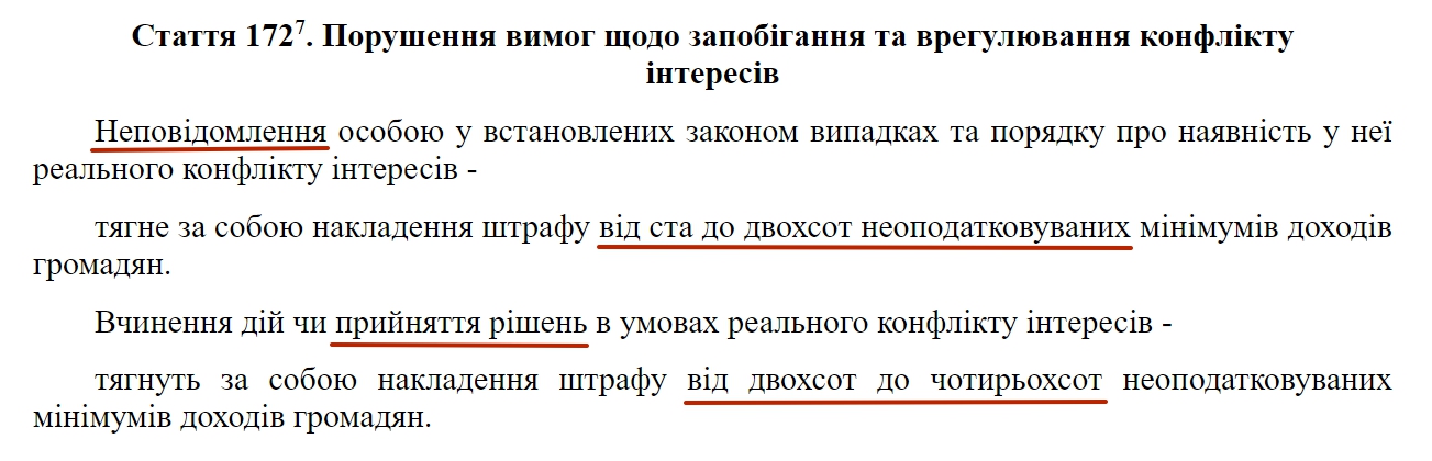 Штраф у 1700 гривень за конфлікт інтересів ціною в три мільйони