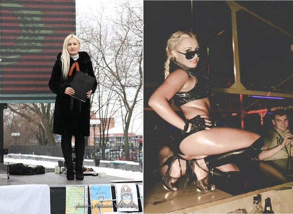 Как же забавно это выглядит - днями на пролет Настенька с Луганской трибуны вещала перед многолюдной толпой пенсионного возраста о том, что следует возродить ценности ушедшего в небытие СССР и всячески препятствовать надвигающейся на целомудренную и святую Русь Гейропе, изобилующей гомосексуалистами, извращенцами, педофилами и прочими моральными уродами, а вечером девушка кардинальным образом преображалась!