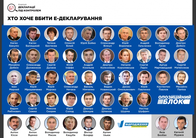 Але всіх 48 парламентерів об’єднує одна масштабна ціль – заблокувати діяльність Національного агентства з питань запобігання корупції та не дати повноцінно функціонувати системі е-декларування.