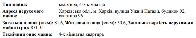 Належить їй і 4-кімнатна квартира у Харкові, яку Ольга Григорівна отримала у спадщину.