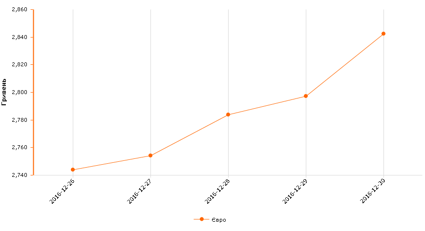 Официальный курс гривни к евро установился на уровне 28,42 грн, что на 45 копеек больше от предыдущего установленного банком курса. Кроме того, российский рубль обновил годовой максимум, поднявшись на 8 копеек. Так, десять рублей равны 4,51 грн.