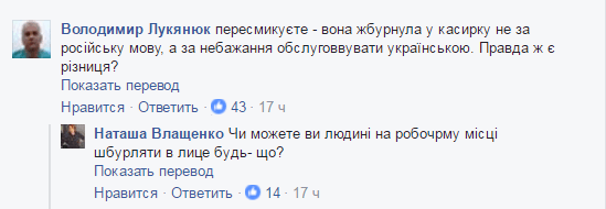 «Не буду писать о своих чувствах, не буду напоминать, что большинство защитников Донецкого аэропорта и убитых под Иловайском были русскоязычными… Просто попрошу тех, кто меня тут читает: никогда, слышите, никогда не покупайте детям книжки, написанные женщинами, швыряющими монеты в лицо маленьким кассиршам или любым другим людям. Честно говоря, я не верю, что эта писательница – вообще женщина», — написала Наталья Влащенко в своем Facebook.