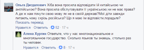 «Подхожу к кассе. На новой кассирше лет сорока написано «ученик». Нет, я сегодня не в настроении выслушивать русский, но смотрю на бейж и понимаю, что это неизбежно. Опережая кассиршу, четким украинским говорю: – Здравствуйте! – Добрий день! – не въехала ученица. Вздыхаю. Ученица продолжает: – Это Ваше? – Да, это мое, – отвечаю вежливо и спокойно, – а Вы украинский знаете? – Знаю! Еще что-то хотите, может акционный товар? – Так хочу. Прошу меня обслужить на украинском, – продолжаю мягко. – С Вас тридцать две гривны, двадцать пять копеек! – упрямо отвечает ученица», – рассказала Ницой.