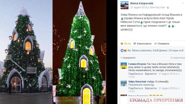 При этом, пользователи соцсети обвинили власти Буче в плагиате, поскольку похожая елка была в Вильнюсе.