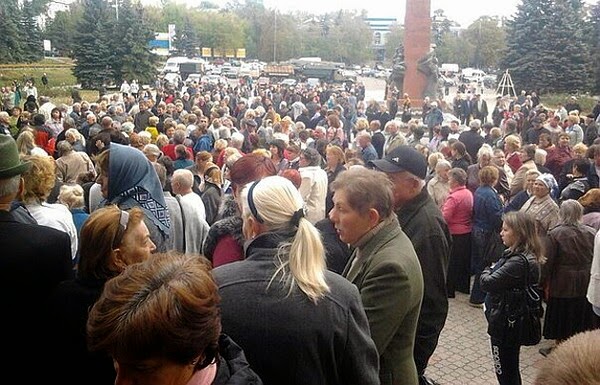 Еще в воскресенье, 21 сентября, на его центральной площади собрались порядка десяти тысяч местных жителей, которые потребовали выплатить им зарплаты и пенсии, а также прекратить терроризировать население и отбирать у него имущество.
