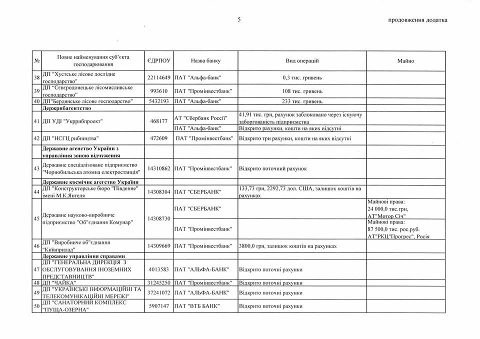 Народный депутат Украины Виталий Куприй во вторник, 17 января, обнародовал список государственных предприятий и учреждений, которые пользуются услугами российских банков.