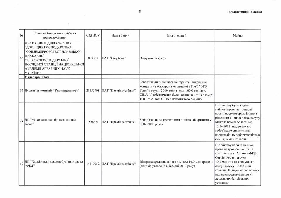Так, Куприй обратил внимание, что российские банки обслуживают крупнейшие украинские государственные компании. Среди них - гиганты «Укрзализныця», «Укрэнерго», «Администрация морских портов Украины», «Государственное космическое агентство Украины», ряд угольных государственных предприятий. Более того, в списке есть также предприятия «Укроборонпрома», которые работают в различных сферах оборонной промышленности Украины.