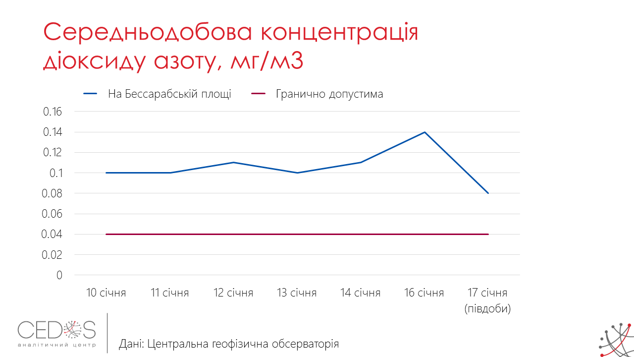 По состоянию на утро 18 января, уровень формальдегида, углекислого газа и азота в Киеве значительно превышает предельно допустимые концентрации.