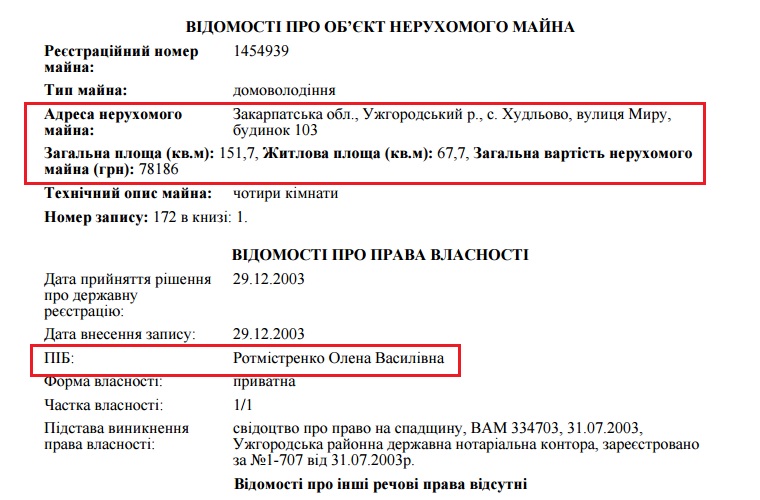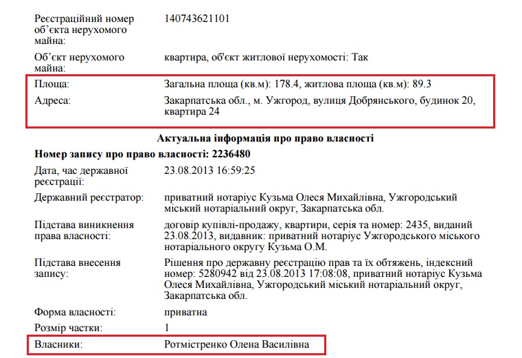 Має також мати судді Ротмістренко і чималу квартиру площею 178 м2 в самому Ужгороді.