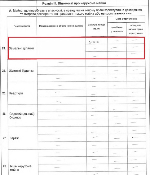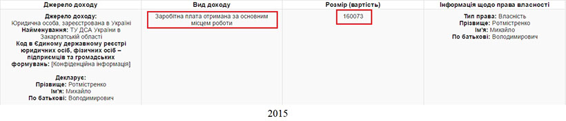 Єдиним майном, яке зазначено в декларації судді Ротмістренко за 2014 рік, була земельна ділянка площею 50 соток.