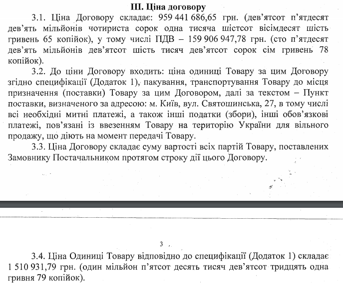 Еще один скандальный момент: общая сумма договора поначалу составила 959,4 млн. гривен, а цена одного автомобиля – 1 млн. 510,9 тыс. гривен. Это, по данным журналиста Сергея Щербины, более чем на 10 000 долларов выше, чем обычная цена этого автомобиля: