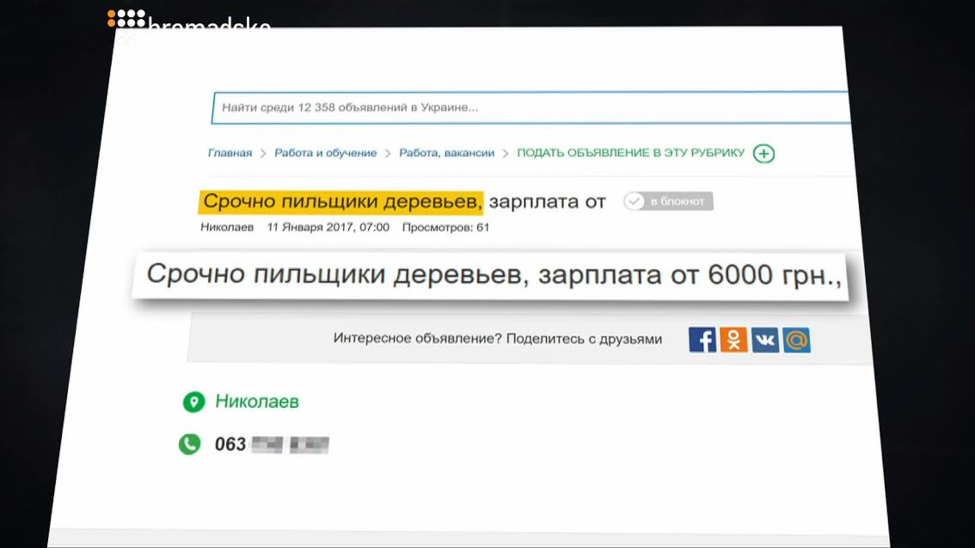Рубачі особливо не ховаються. Оголошення про набір «розпилювачів дерев» та вантажників знайти не складно. На одне з таких натрапило «Слідство.інфо». Дзвонимо роботодавцям.