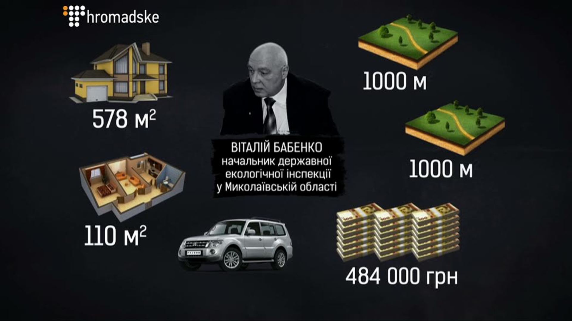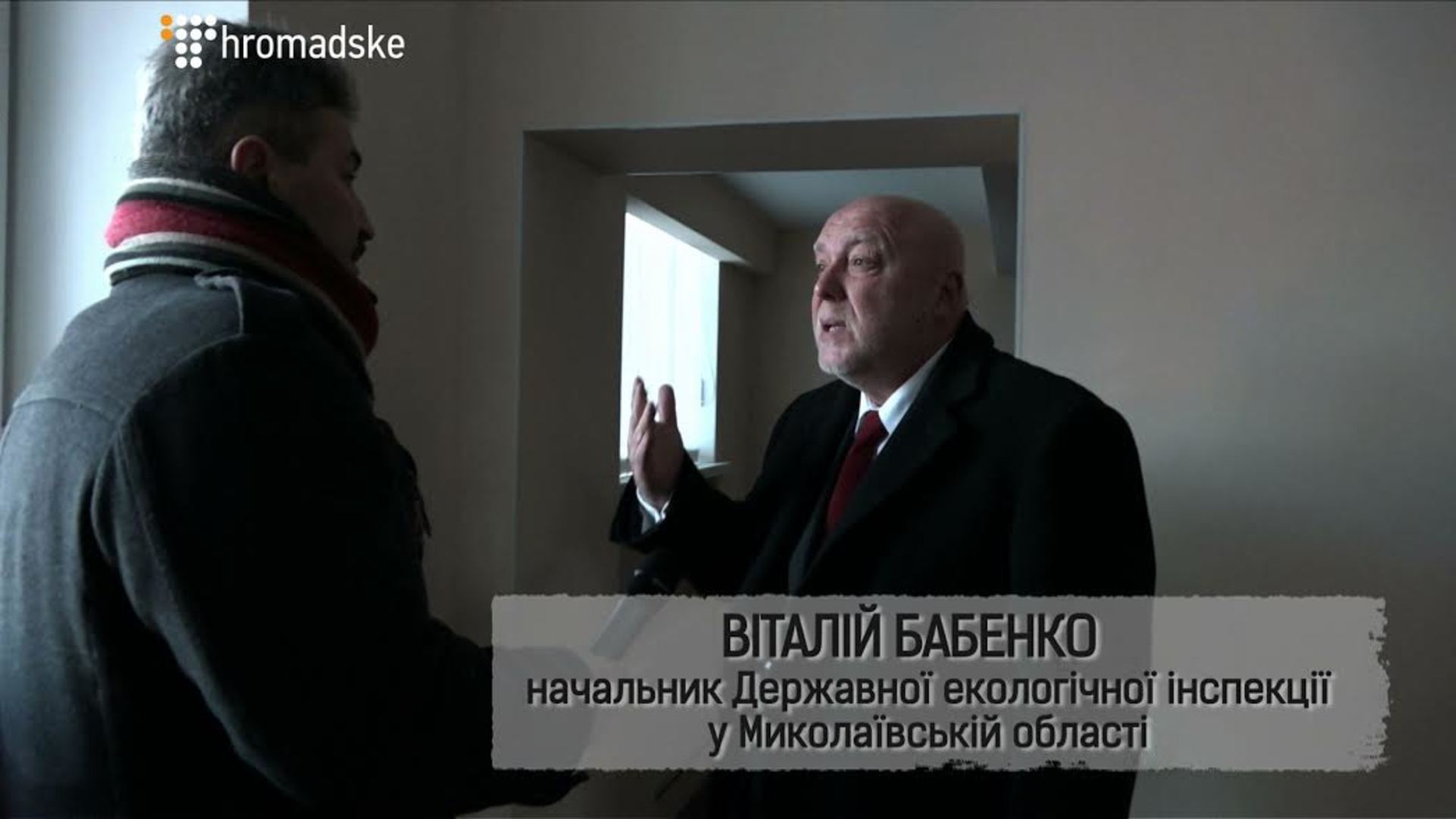 А тим часом начальник держекоінспекції в Миколаївській області Віталій Бабенко, який мав би контролювати вирубування дерев, звів котедж в сосновому лісі на березі Південного Бугу. Ця земельна ділянка була незаконно відчужена у Миколаївського лісгоспу, а потім через другі руки потрапила до голови екоінспекції. Суд визнав угоду незаконною і вимагав повернути ділянку у власність держави. Але це не зупинило головного екоінспектора - він добудував маєток, знищуючи багатолітні дерева.
