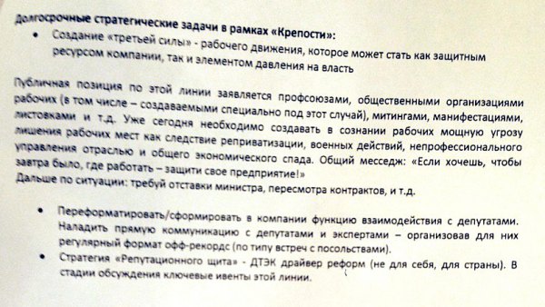 В случае, если менеджмент компании ДТЭК будет отрицать существование подобного документа, готов предоставить и опубликовать перечень всех лиц, ответственных за реализацию проекта "Крепость", а также более детальный план мероприятий, часть которых уже реализована. Помимо этого в ближайшее время я передам детальный план "Крепости" общественным организациям для анализа и подготовки ответных шагов.