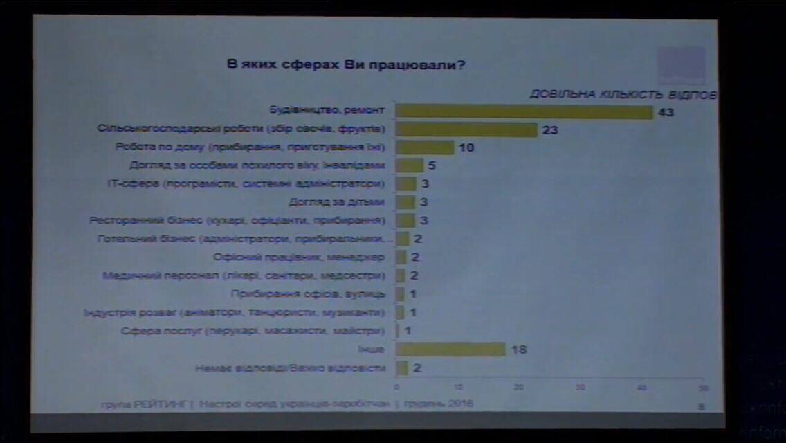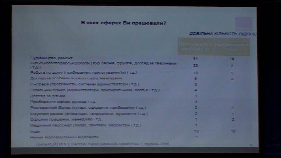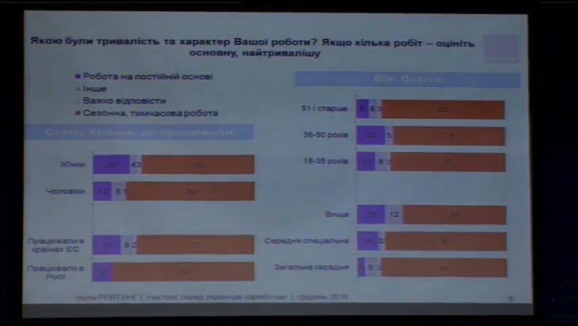 «Мы провели опрос в конце декабря 2016 года. 436 гастарбайтеров, из тех, кто за последние 5 лет побывали на заработках за границей. Треть этой выборки - это люди, которые именно в 2016 году побывали за границей на заработках. Опрос показал, что 70% - это сезонные «заробитчане», только 15% - работают за границей на постоянной основе», - заявил он.