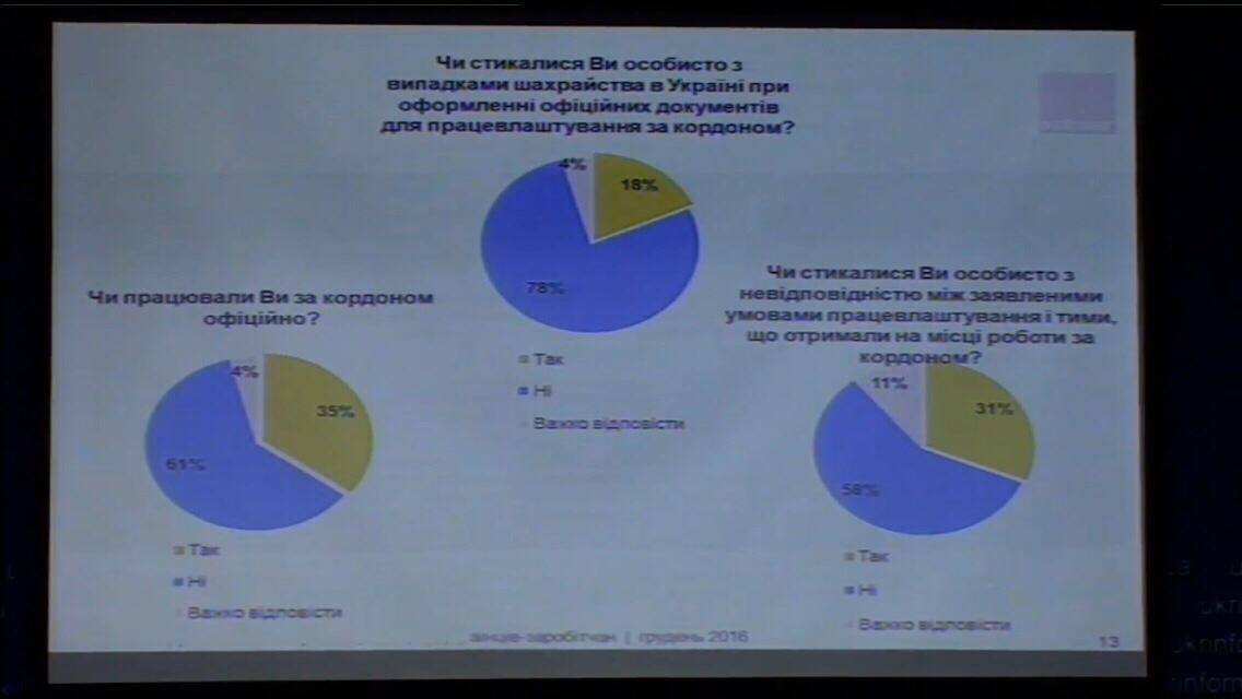 В свою очередь, президент Всеукраинской ассоциации компаний по международному трудоустройству Василий Воскобойник добавил: «В нашей ассоциации мы убеждены, что трудовые мигранты являются важным фактором финансовой стабильности в непростых нынешних условиях, ведь, по нашим данным, с 2011 по 2015 г. трудовые мигранты перечислили в Украину порядка $35 млрд», - сказал он.