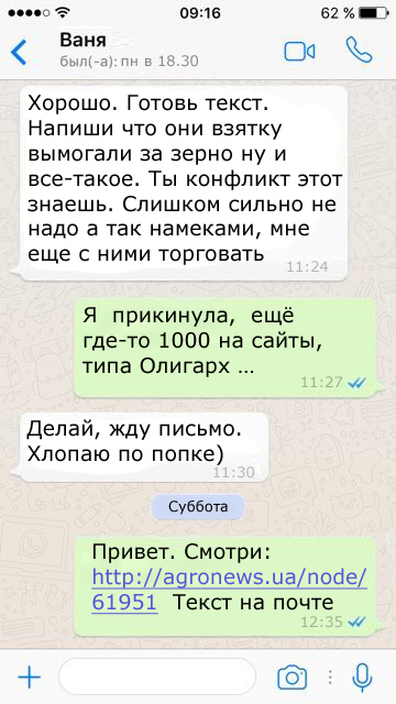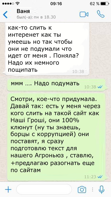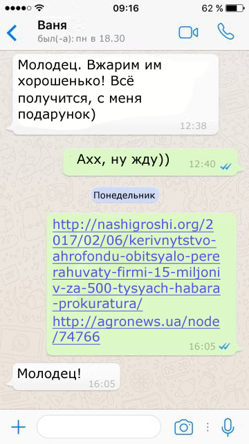 Так, на авторитетном ресурсе «Наші гроші” появились статья с пафосным заголовком: «Руководство агрофонда за контракт в 15 млн. грн, требует взятку в 500 тысяч». Возникает вопрос, как информация из незакрытого уголовного дела попала в СМИ? Только если ее целенаправленно купили для распространения и подмены фактов.