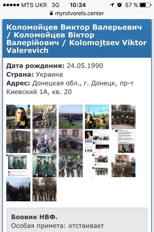 Як повідомив Дмитро Снєгирьов, Віктор Коломойцев - 24.05.1990 р. н., проживає за адресою: м.Донецьк, пр. Київський, 1а. Військова служба: Україна, А0281 м.Житомир,2009-2012. З 2014 р. в ч 08805, РФ