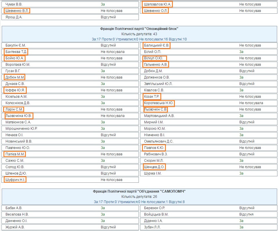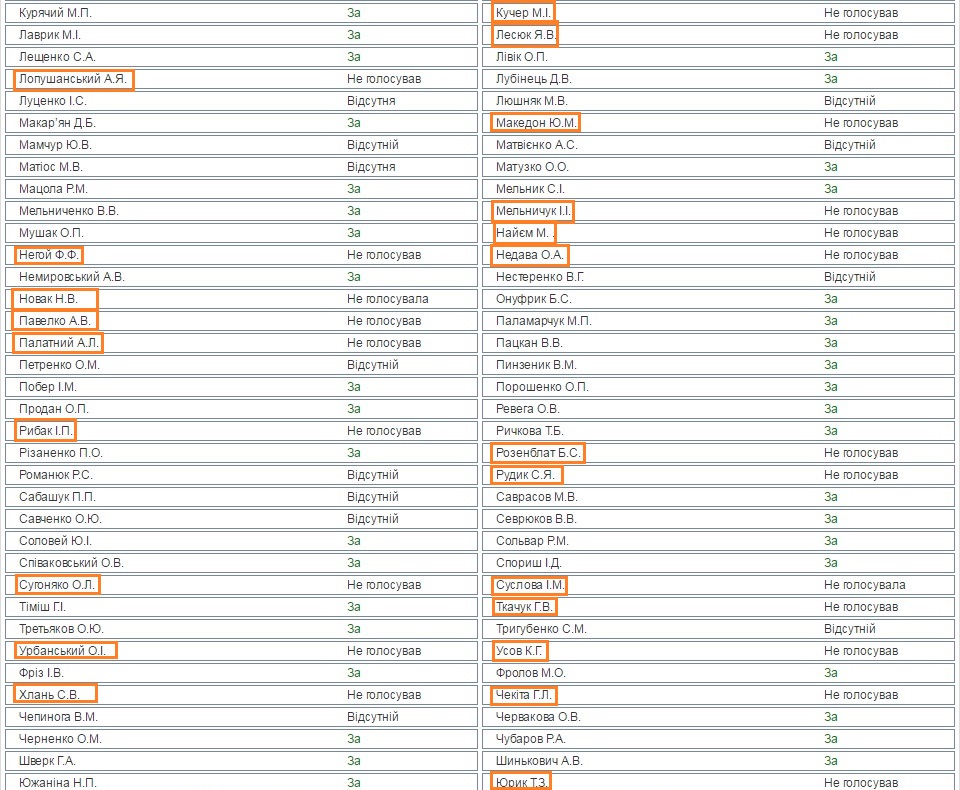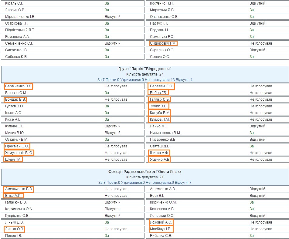 124 народных избранника наплевали на участников АТО и Революцию Достоинства (поименно)