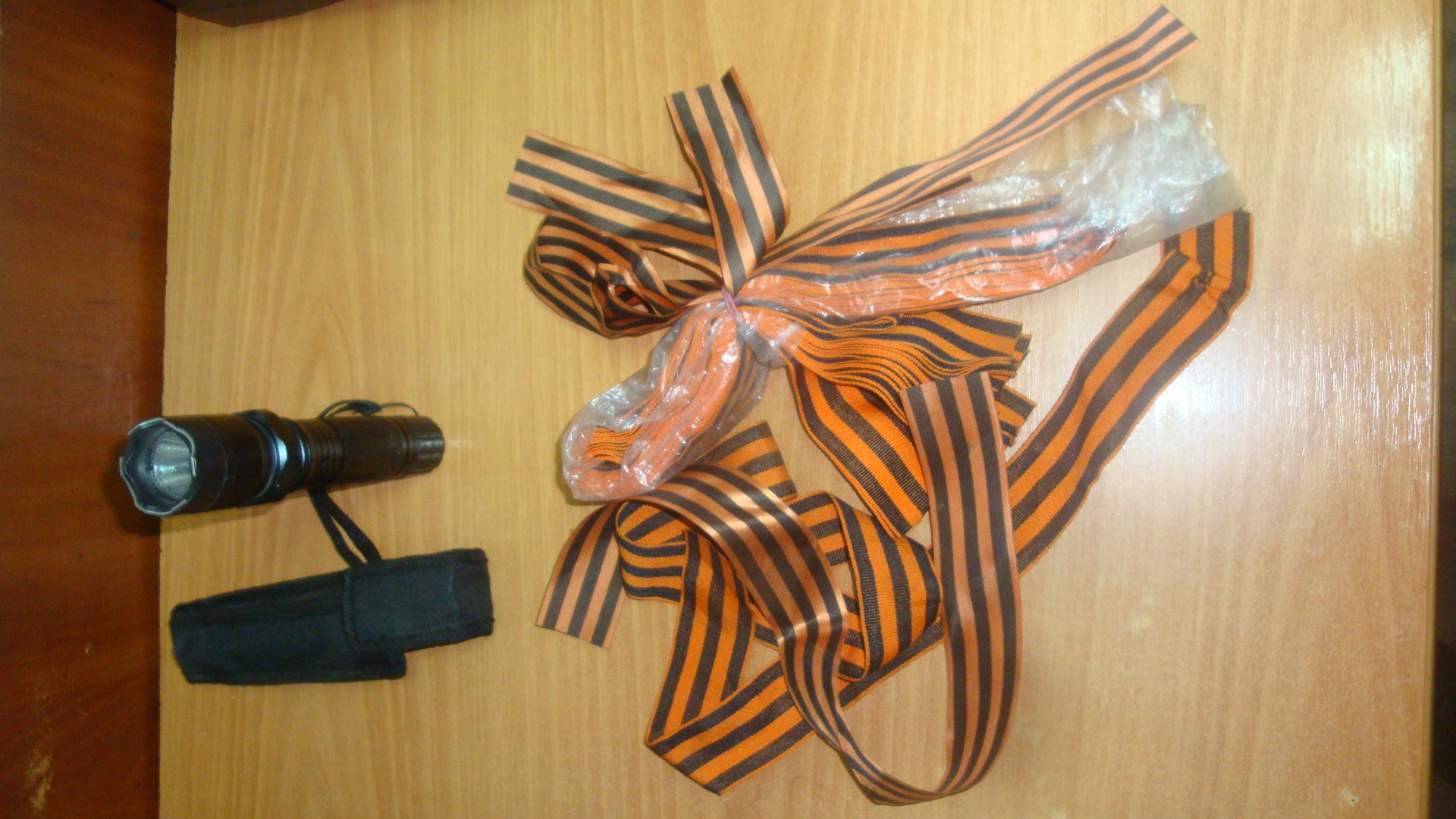 Мужчина объяснил, что ленты у него из России, там ему их подарили во время проведения акции. Говорит, что просто забыл их выложить.
