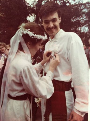 Шлюб пара уклала 27 квітня 1991 року. На весілля молодята їхали на возі з конями.