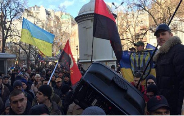 Так, после основного митинга непосредственно на Майдане, активисты, в рядах которых много представителей националистических организаций, бойцов добробатов, участников АТО, нардепы, пошли колонной к Администрации Порошенко.