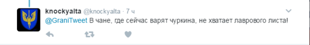 Пользователь под ником Knockyalta пошутил: "В чане, где сейчас варят Чуркина, не хватает лаврового листа":